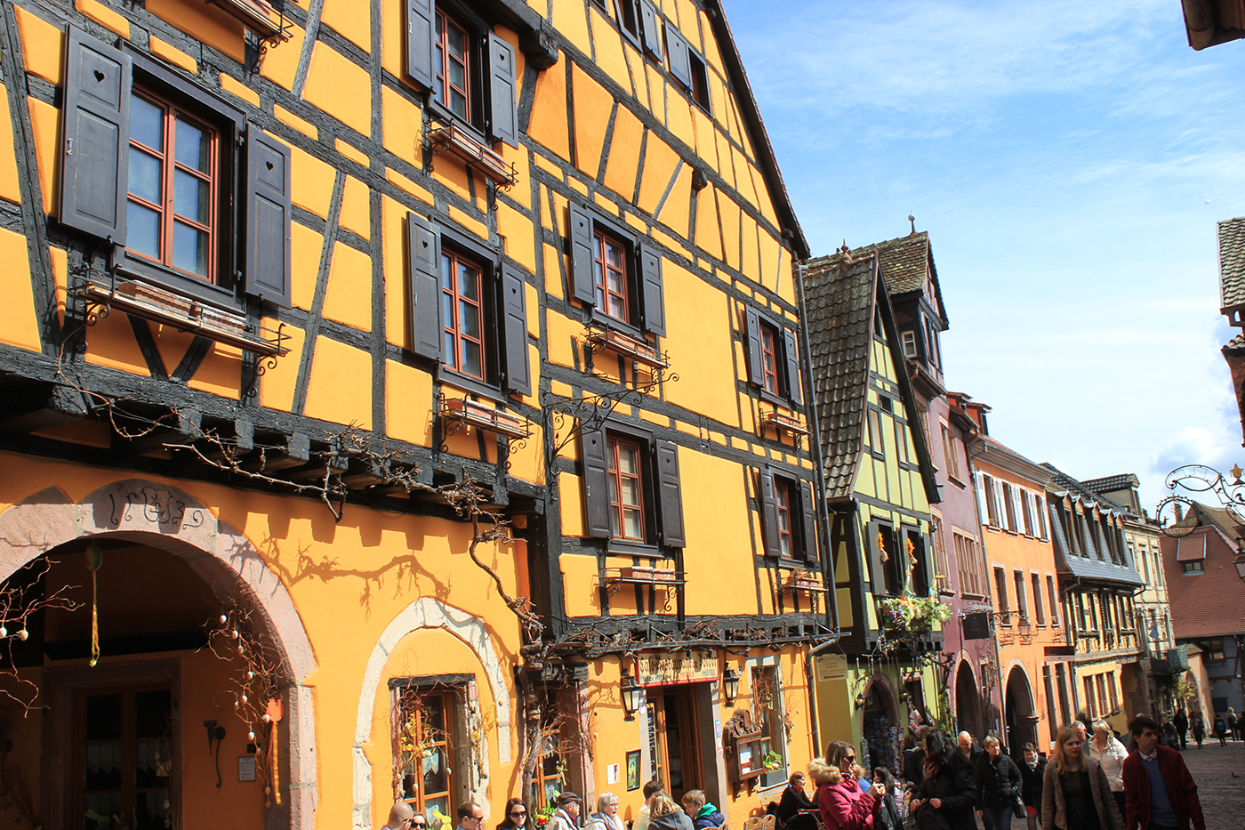 Beim Rundgang kommen sie auch am Hôtel de ville aus dem 19.J. vorbei. Hier war früher das Untertor im Renaissancestil. Vorbei an stolzen Winzerhäusern kommen sie beim berühmten Dolder an. Heute ist dieser Turm-Torbau im Fachwerkstil das Wahrzeichen von Riquewihr.